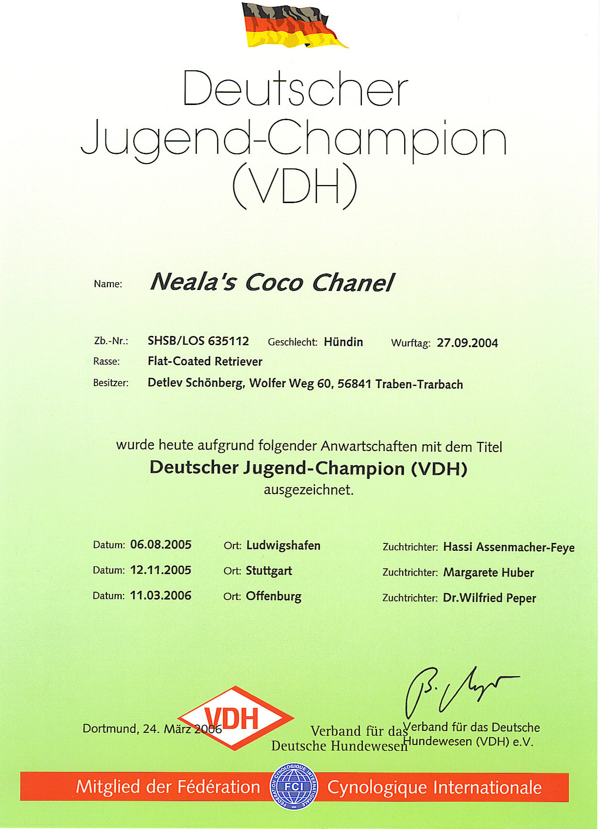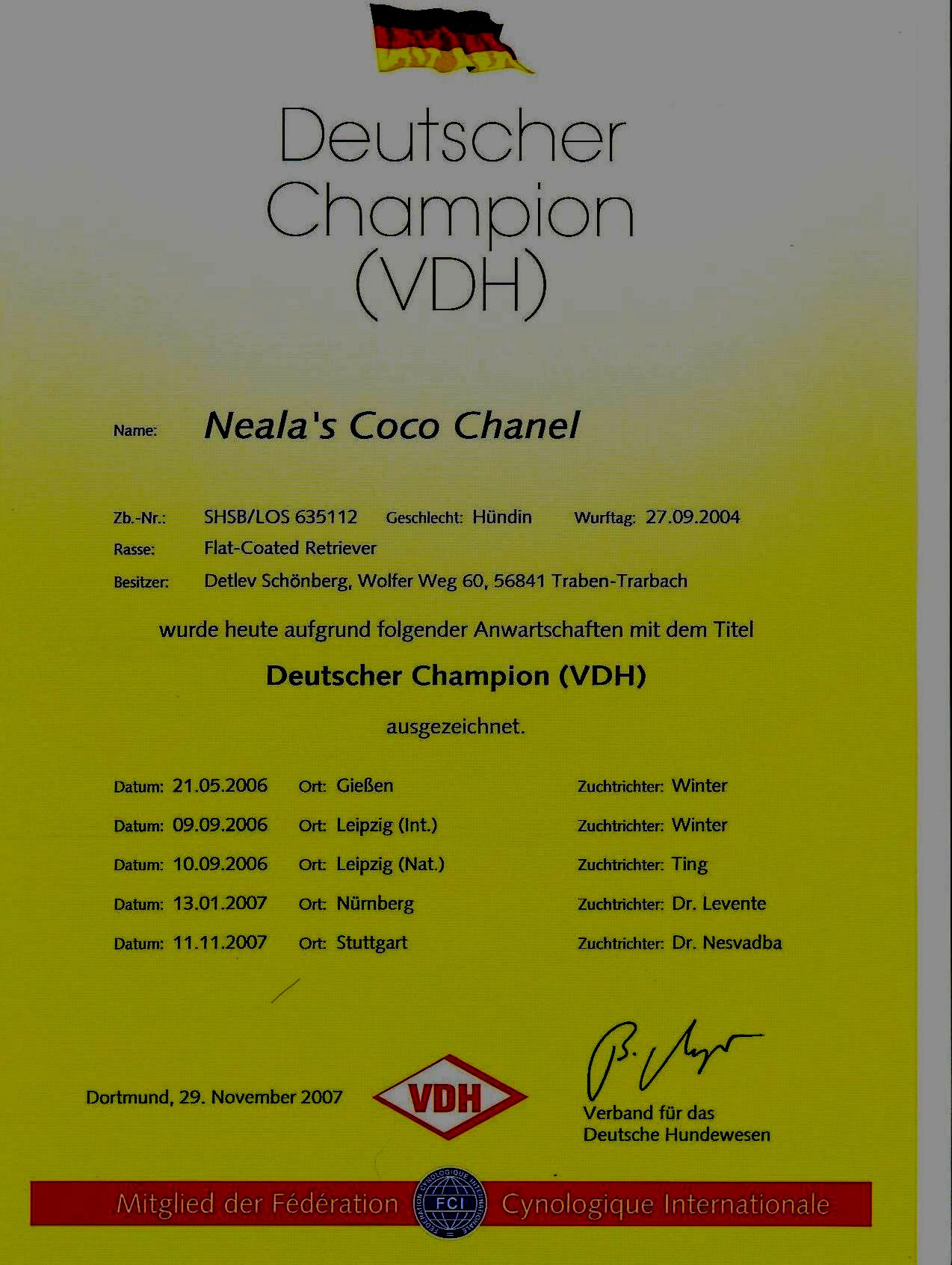 Bewertung:V1, Anw.Dt.Ch.VDH + DRC (Championsklasse) |