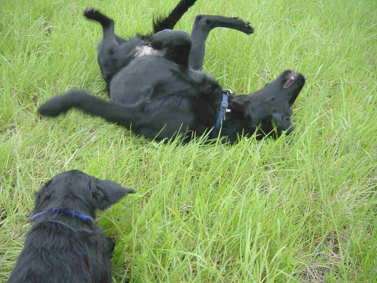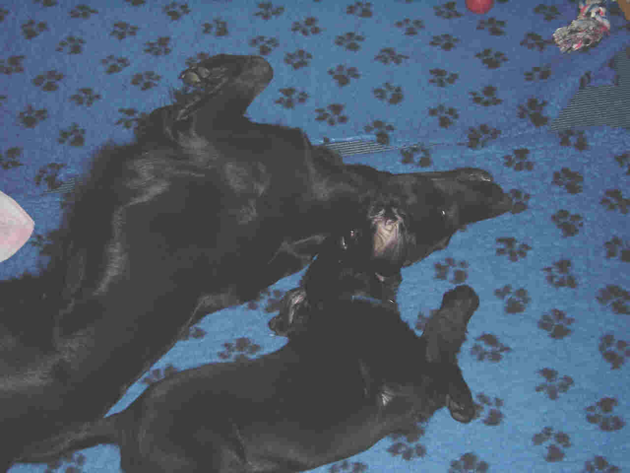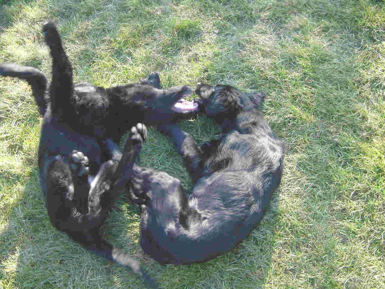 Heute waren ich bei meiner Schwester Jamie (Neala's Crazy Little Thing) zu Besuch. Zuerst durften wir spielen, dann mußten wir sitzen, danach durften wir wieder spielen. Es war super.
