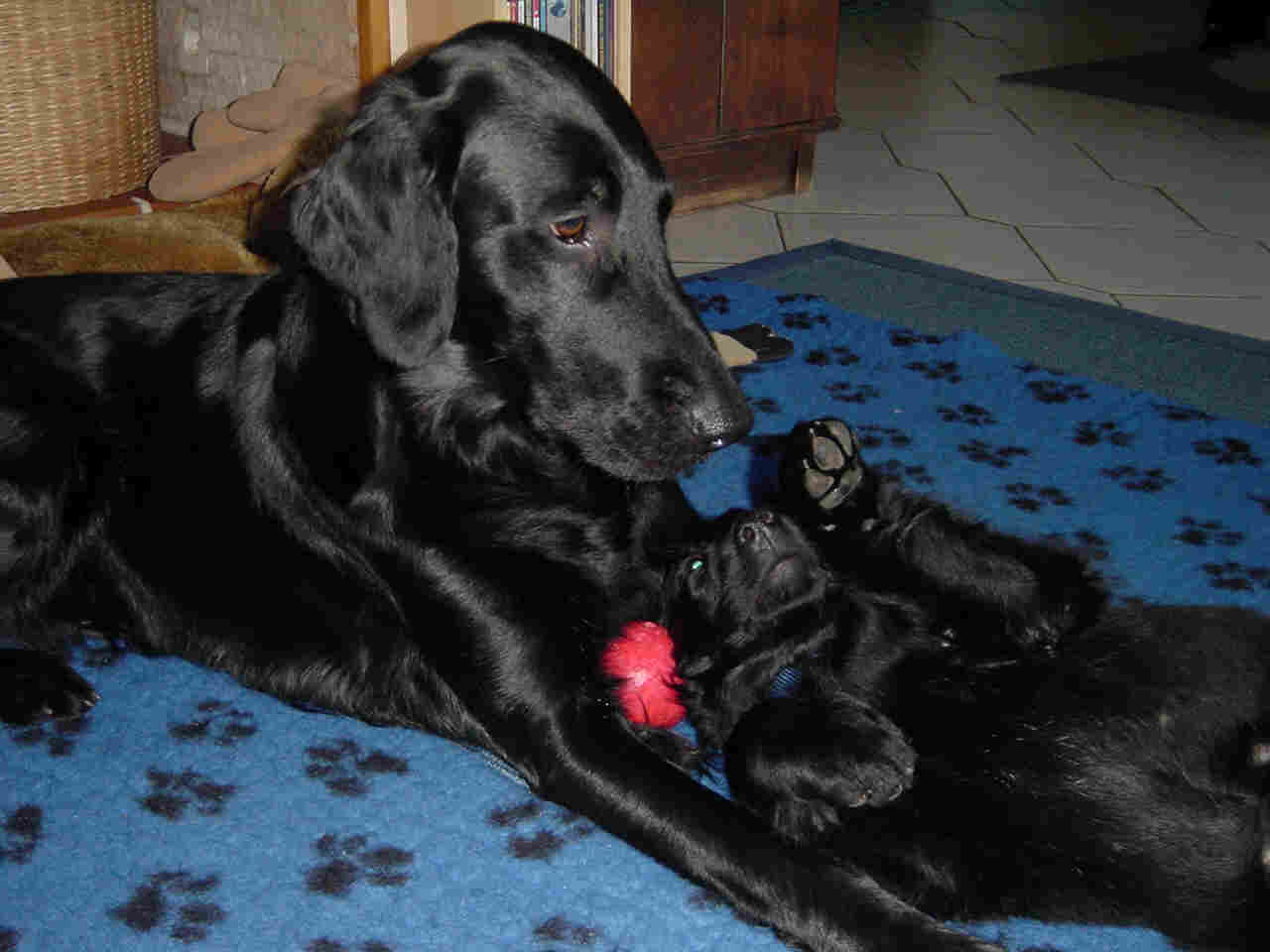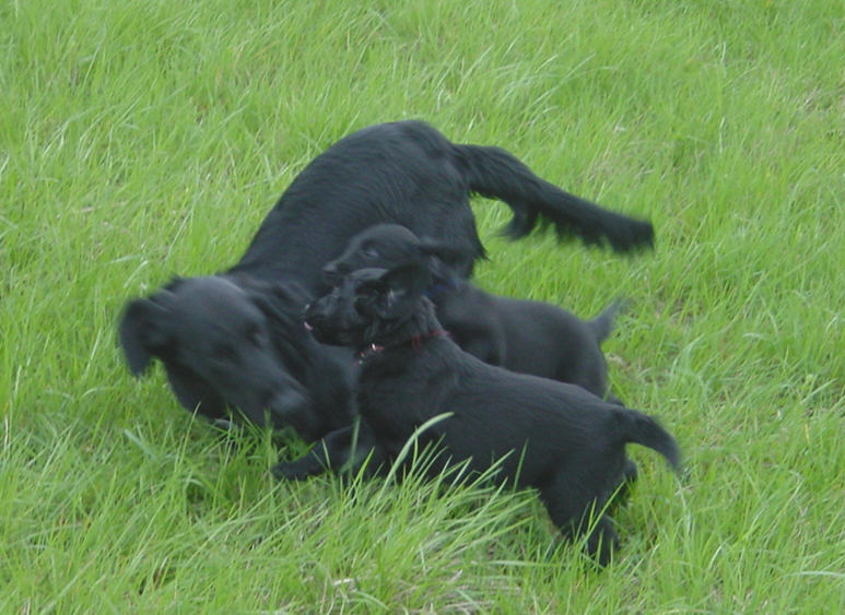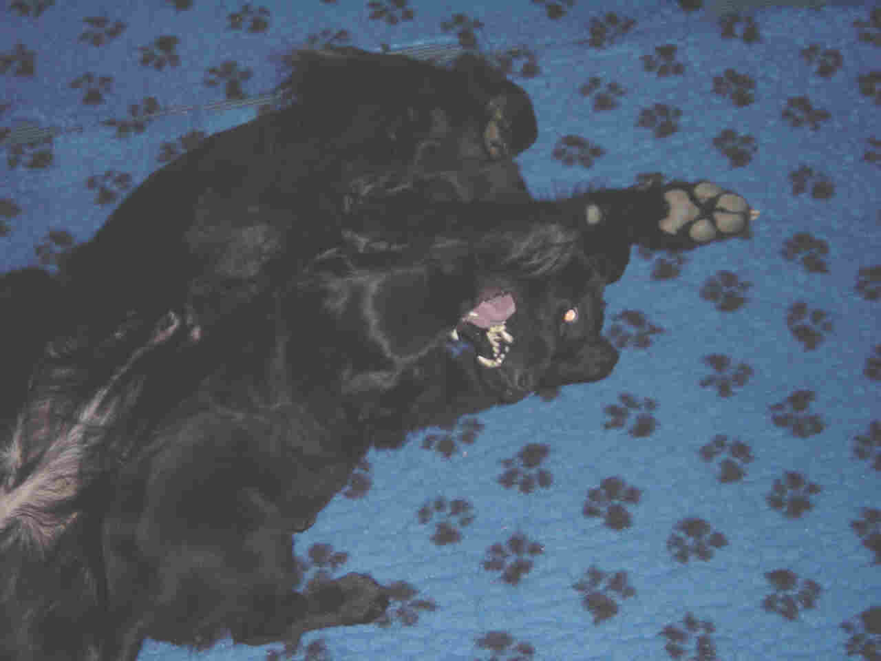 Heute waren ich bei meiner Schwester Jamie (Neala's Crazy Little Thing) zu Besuch. Zuerst durften wir spielen, dann mußten wir sitzen, danach durften wir wieder spielen. Es war super.