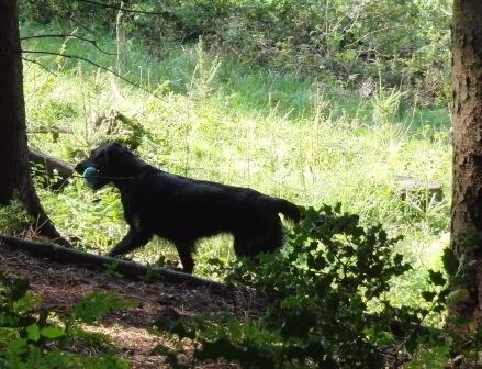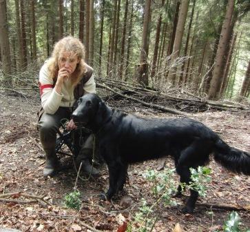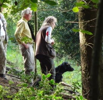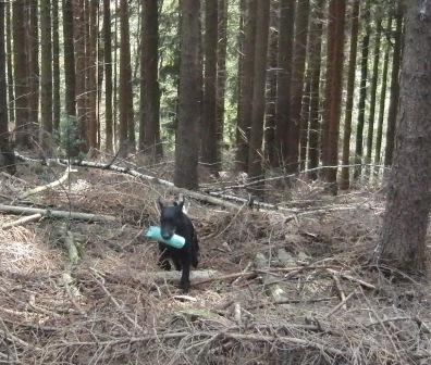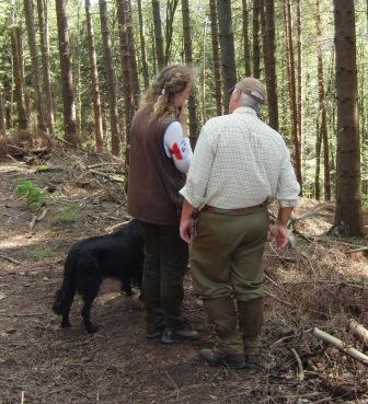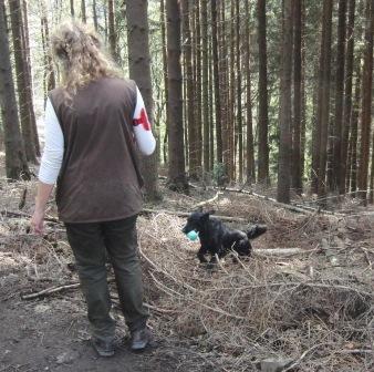 3. Aufgabe: Malcolm Stringer Doppelmark im Wald. Zuerst das erstgeworfene Dummy arbeiten. |