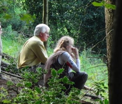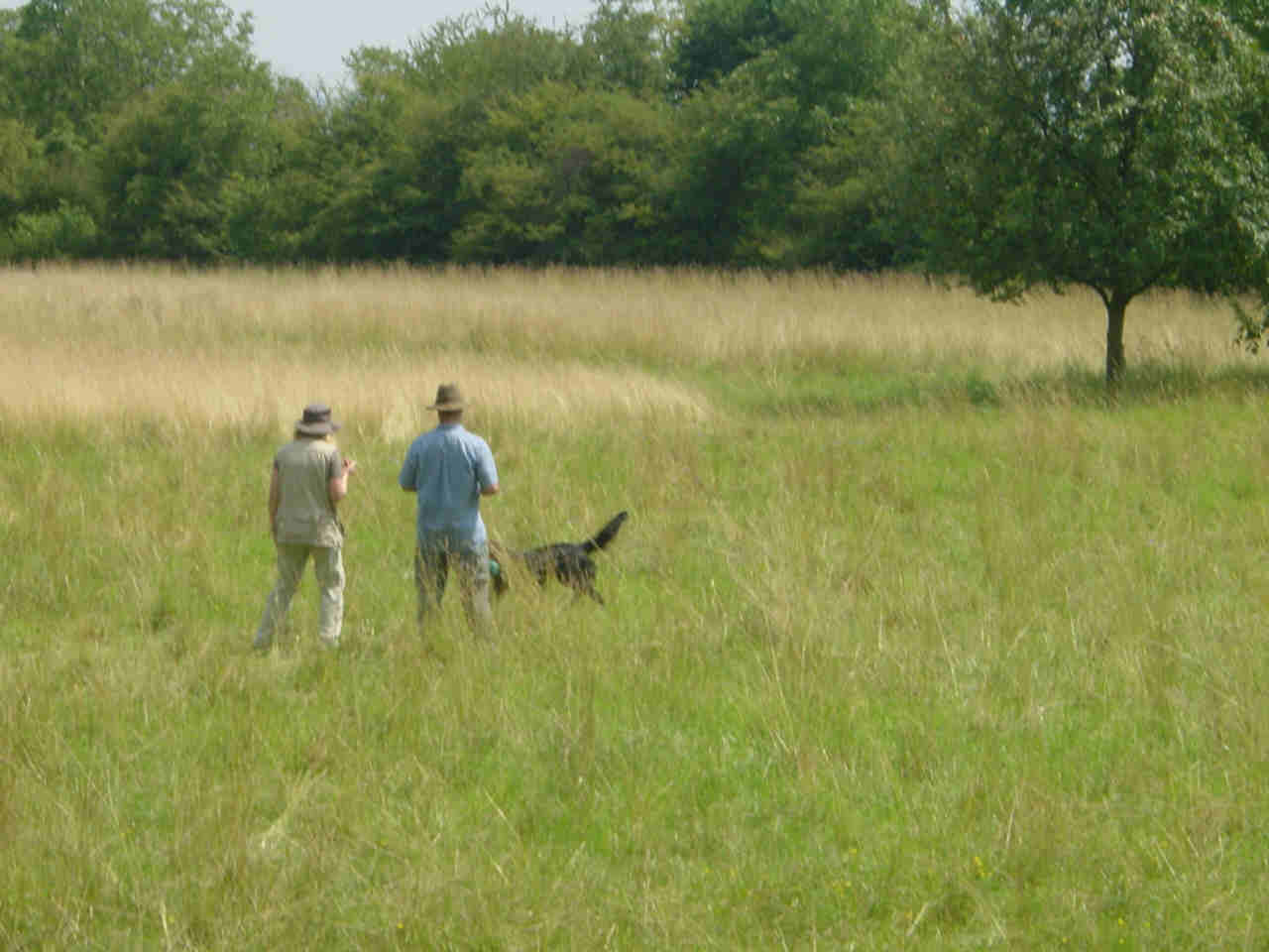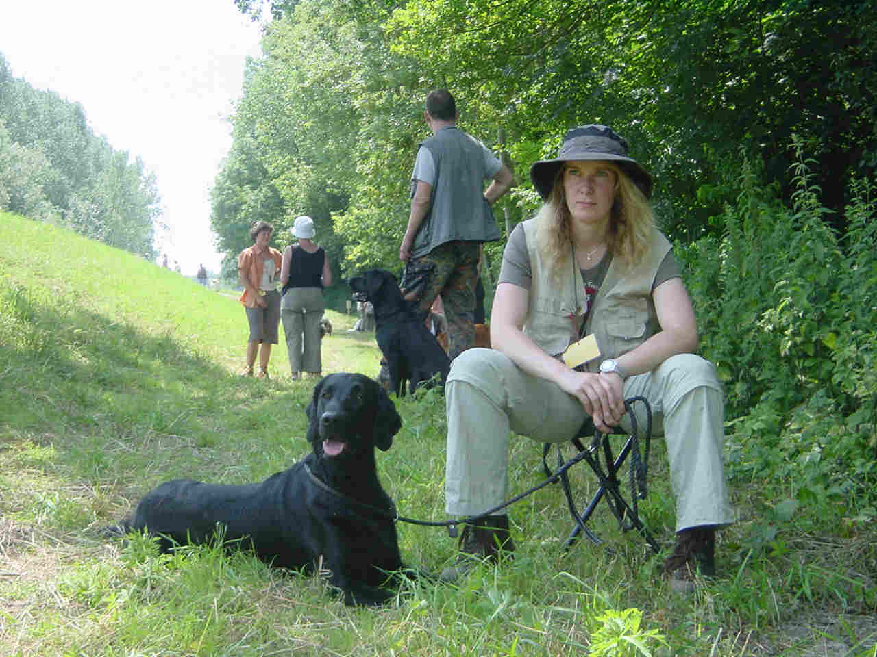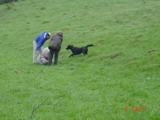 Das Einzelmark in den Farn. Ally ist direkt in den Bereich der Fallstelle in den Farn gelaufen. Hat aber einige Zeit suchen müssen, bis sie das Dummy gefunden hat. Ich finde das Bild von einem sitzenden Herrn Sandercock und mir wirklich nett. Man konnte aus dieser Position den Hund besser beobachten. Mir ist gar nicht aufgefallen, dass der Richter sich neben mich gesetzt hat. Ein netter Schnappschuss von Elfie. Danke. |