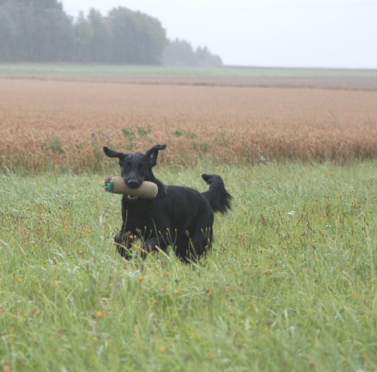 Die 16 Monate alte Flat-Hündin zeigte sich sehr bewegungsfreudig. Sie ist sehr temperamentvoll und ausdauernd. Die jagdlichen Anlagen wurden in ausgepräger Form sichtbar. Im Kreis sicher und unbeeindruckt und drängt stark aus dem Kreis. Die Bindung ist gut, ebenso die Unterordnungsbereitschaft. Im optischen und akustischen Bereich belastbar. Die Hündin ist schussfest. |